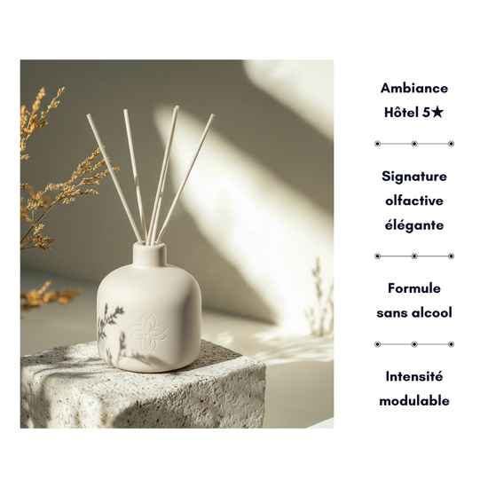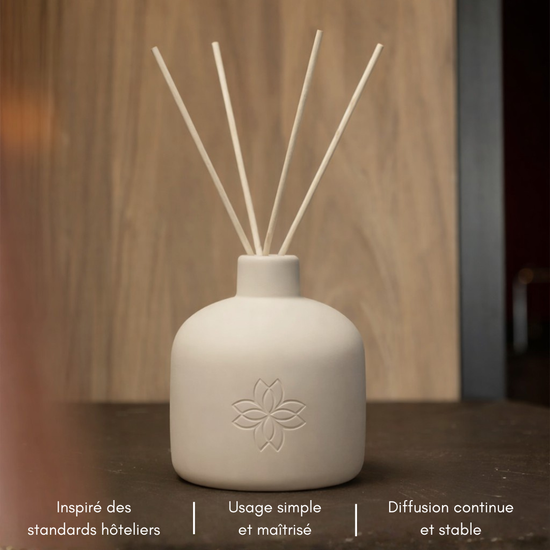 - ✓ Diffusion continue : parfum homogène, du matin au soir, sans alcool